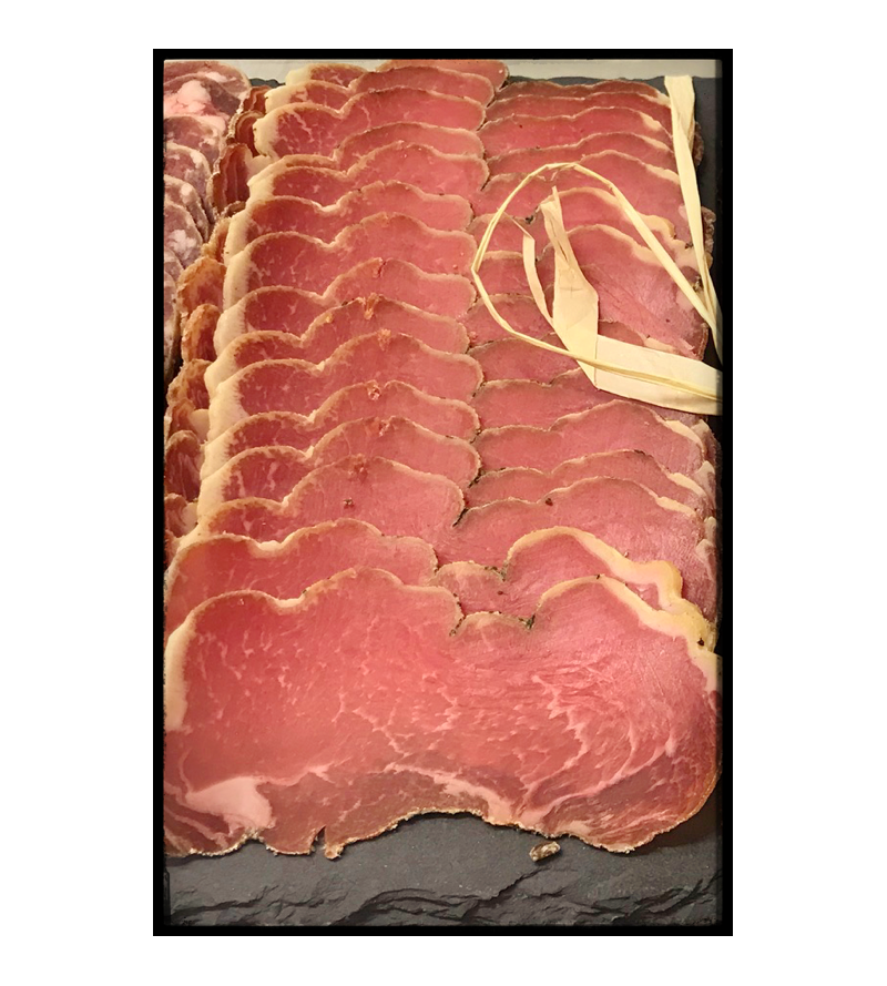 Filet de porc noir séché à la ferme, sel , poivre et c'est TOUT!