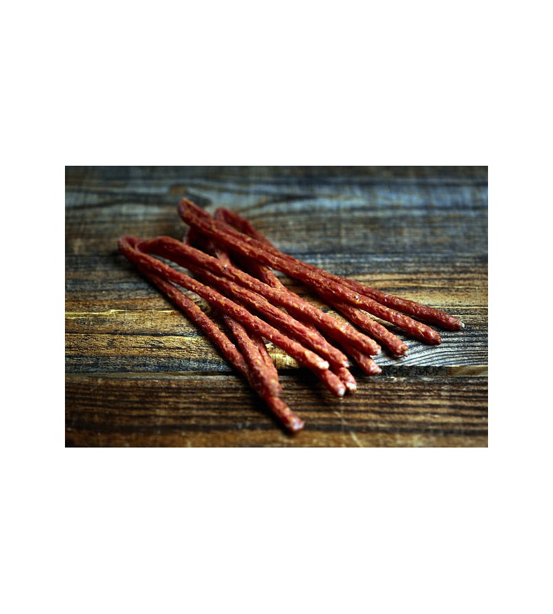 Le ficellou viande de porc noir séchée à la perche ( à la ferme), d'un petit diamètre.