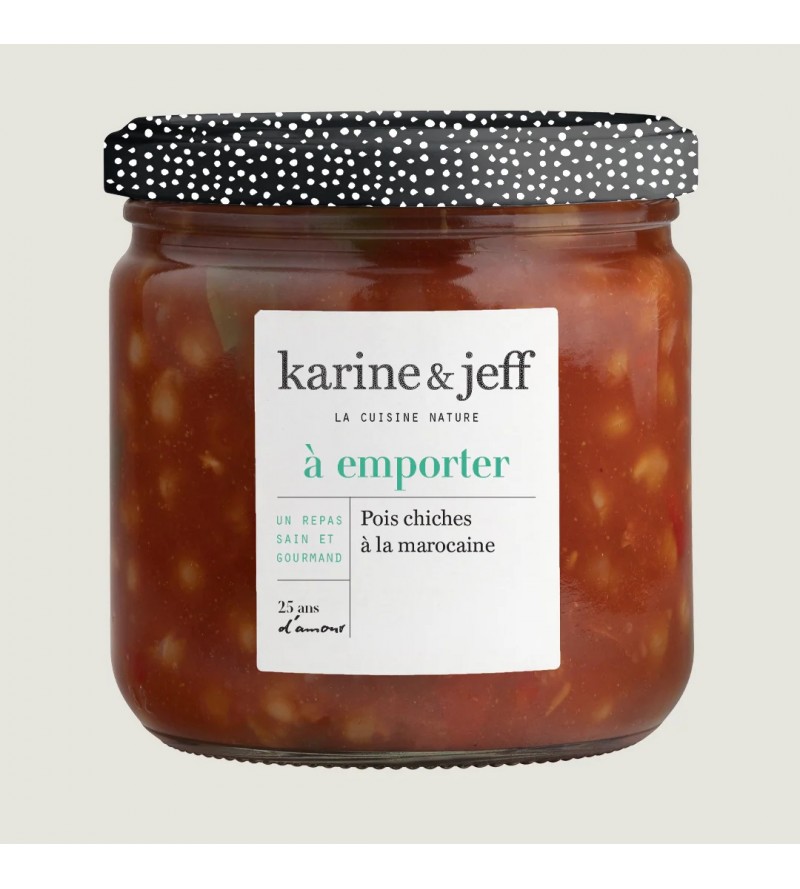 Embarquez pour un voyage gastronomique avec le plat signature de Karine et Jeff :"Pois Chiches à la Marocaine". Ce mets, un fleuron de notre collection "Plats Cuisinés", est une célébration de la culture et de la cuisine marocaine, alliant les traditions culinaires ancestrales à une touche de modernité. Chaque ingrédient est choisi avec soin pour offrir une expérience gustative authentique et pleine de saveurs.